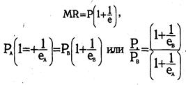 Очевидно, что при одинаковой эластичности спроса (еА= eВ) ценовая дискриминация невозможна (РА = РВ). Если же эластичность спроса на разных рынках различна, то там, где она больше, ниже цена (eА>eВ, PА<PВ).