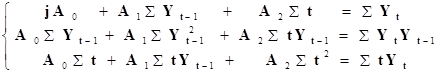 Коэффициенты регрессии авторегрессионного уравнения рассчитываются на основе метода наименьших квадратов по следующей системе нормальных уравнений: