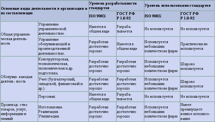 См. Таблица 1. Стандартизация основных видов деятельности в организации