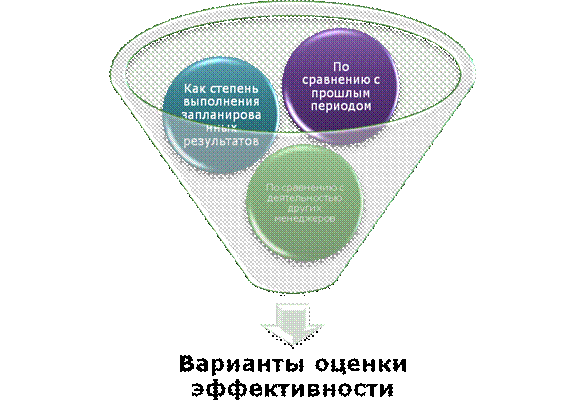 В самостоятельную группу можно выделить научные исследования, придерживающиеся следующей точки зрения – эффективность управленческой деятельности, есть результат сравнения итогов управления и ресурсов, затраченных на получение этих итогов. В данном случае основной упор делается на достижение эффективности путем сокращения затрат, либо через снижение величины используемых ресурсов. Эффективность может быть определена: как степень выполнения запланированных результатов, параметры которых были заданы ранее; с точки зрения сравнения с другим периодом или с деятельностью других менеджеров: