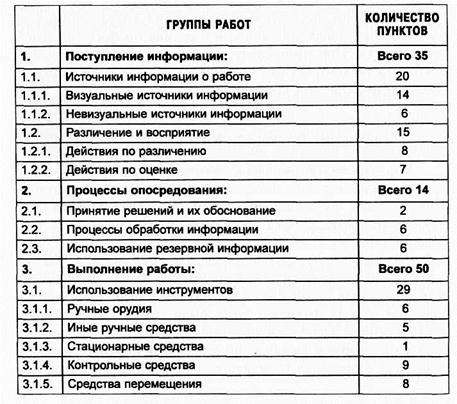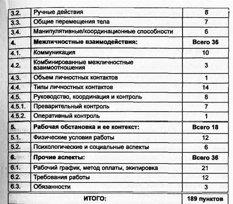 В своей окончательной форме он имеет структуру, представленную в табл.8.1. PAQ состоит из 187 элементов работы (пунктов), которые характеризуют или заключают в себе различные типы основных форм человеческого поведения в труде. Элементы работы сгруппированы в шесть больших разделов. Эти разделы и их подразделы приведены в табл. 8.1. Указано общее количество рабочих пунктов в каждом подразделе (подробнее см.: www.paq.com).