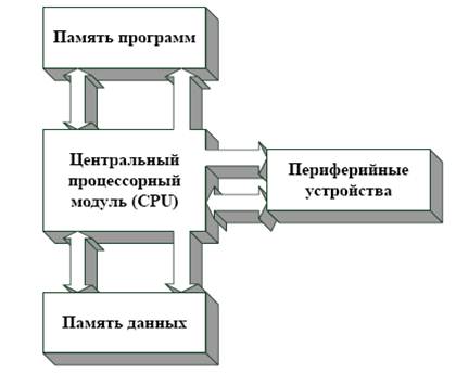 Разрядность шины данных памяти программ совпадает с разрядностью команды CPU. Разрядность шины данных памяти данных совпадает с разрядностью данных CPU.