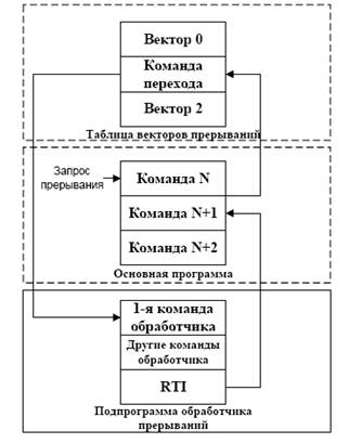 При выполнении команд основной программы и подпрограмм обработчиков прерываний для хранения временных данных (операндов, результата, слова состояния и т.п.) используется один и тот же набор рабочих регистров. Из-за случайности момента появления запроса прерывания переход на обработчик прерывания сразу после его появления может привести к нарушению нормального хода выполнения программы из-за разрушения данных основной программы. Поэтому, перед переходом на обработчик прерывания следует сохранить содержимое рабочих регистров (сохранение контекста), а после завершения обработчика восстановить их содержимое.