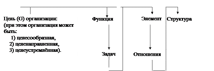Построение организации зависит от ее цели, размеров и возврата. Функции через последовательность преобразований реализуются в структуре организации (рис. 24.).