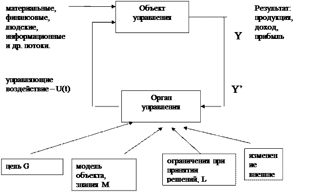 Цель управления - состояние объекта управления или результат его функционирования. – желаемое состояние. Цель – конкретные числовые значения желаемых результатов. Без цели управление не может быть реализовано.