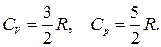 Изобарная и изохорная теплоемкости идеального газа отличаются на величину универсальной газовой постоянной R.
