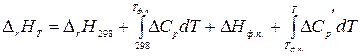Если в интервале температур от 298 К до Т одно из реагирующих веществ претерпевает изменение агрегатного состояния, то есть происходит фазовое превращение, то интервал температур разбивается на два интервала: от 298 К до Т ф.п. (температура, при которой происходит фазовый переход) и от Т ф.п. до Т: