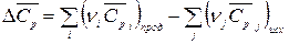 Так как изобарная теплоемкость обладает свойствами функции состояния, для Δ Ср можно записать: