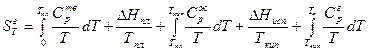 где Δ Sж – изменение энтропии жидкости при нагревании ее от Т пл. до температуры кипения Т кип.; Δ Sисп – изменение энтропии при испарении жидкости; Δ Sг – изменение энтропии при нагревании газа от Т кип до температуры Т. Тогда