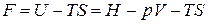 где U – TS = F – свободная энергия Гельмгольца. При V, T = const изменение энергии Гельмгольца связано с выполнением полезной работы: