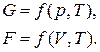 F = f(V, T, n1, n2, …, nk)
