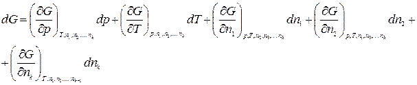 Рассмотрим термодинамическую систему, состоящую из k компонентов. Пусть n1, n2, …, nk – число моль 1-го, 2-го, …, k -го компонентов. Тогда свободная энергия Гиббса является функцией следующих переменных: