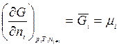 Таким образом, химический потенциал – это частная производная от свободной энергии по количеству моль i -го компонента при постоянстве соответствующих внешних параметрах и числе моль всех остальных компонентов. Таким образом, химический потенциал является парциальной мольной энергией Гиббса (при р, Т = const):