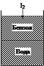 Предположим, в стакане находятся две жидкости, практически не смешивающиеся друг с другом, например, бензол и вода. Введем в эту систему третий компонент, например, небольшое количество йода. Добавленное вещество вполне определенным образом распределится между двумя жидкими фазами. При установлении равновесия в соответствии с теоремой Гиббса химические потенциалы распределяющегося вещества (йода) в соприкасающихся фазах (I) и (II) будут равны:
