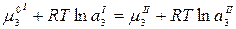 Выразим химический потенциал третьего компонента в обеих жидких фазах через его термодинамическую активность: