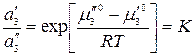 – термодинамические активности распределяющегося компонента (йода) в обеих фазах.