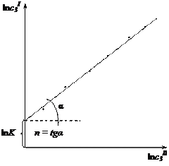Для определения К и n уравнение приводят к линейному виду, логарифмируя правую и левую части: