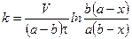 Скорость реакции 2 порядка обратно пропорциональна объему реакционной смеси. Преобразуем уравнение: