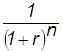 называется дисконтирующим множителем, он показывает «сегодняшнюю» ценность (стоимость) одной денежной единицы будущего.