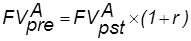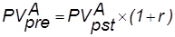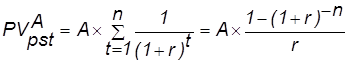 Для оценки будущей и настоящей стоимости аннуитета можно пользоваться вышеприведенными формулами, вместе с тем благодаря специфике аннуитетов, заключающейся в равенстве денежных поступлений эти формулы могут быть существенно упрощены. Если в формулах настоящей и будущей стоимости денежного потока заменить