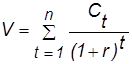 — ожидаемый денежный приток (отток) в t-м периоде (обычно год); n — горизонт прогнозирования r — ставка дисконтирования.