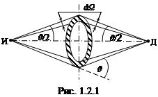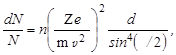 которая позволила объяснить экспериментальные результаты по рассеянию α-частиц на тяжелых ядрах, что, в конечном итоге, привело в 1911 г. к открытию атомного ядра и созданию ядерной модели атома. В формуле (1.2.2): N – количество α-частиц, падающих в единицу времени на рассеиватель; dN – количество рассеянных в единицу времени α-частиц в телесный угол dΩ под углом θ; Z e и n – заряд ядер рассеивателя и их концентрация; v и mα – скорость и масса α-частиц. Схема опыта Чедвика приведена на рис. 1.2.1. Рассеиватель α-частиц в виде кольца (заштриховано на рис 1.2.1) размещался сносно и на равных расстояниях между источником И и детектором α-частиц Д. При измерении количества dN рассеянных α-частиц отверстие в кольце закрывалось экраном, который поглощал прямой пучок α‑частиц из источника в детектор. Детектор регистрировал только α‑частицы, рассеянные в телесный угол d Ω под углом θ к падающему пучку α-частиц. Затем кольцо перекрывалось экраном с отверстием, и измерялась плотность тока α-частиц в точке расположения детектора. Используя полученные данные, рассчитывалось количество N α‑частиц, падающих на кольцо в единицу времени. Таким образом, если известна энергия α-частиц, испускаемых источником, без труда определяется величина Z в формуле (1.2.2). Некоторые из результатов, полученные Чедвиком, приведены в таблице 1.2.1 и не оставляют сомнений в справедливости закона Мозли.