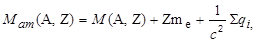 где Σ q i – энергия связи ядра и электронов, Σ q i ≈ 13,6×Z эВ. Таким образом, энергия связи электронов с ядром примерно в 107 раз меньше массы нуклида и практически не влияет на его массу.