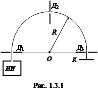 Массы нуклидов определяют с помощью приборов, которые называются масс-спектрометрами. Схема устройства масс-спектрометра изображена на рис. 1.3.1. В ионном источнике ИИ создаются положительные ионы нуклидов, массу Мi которых необходимо измерить. Ионы, имеющие электрический заряд qi, поступают через отверстие в ускоряющее электрическое поле, создаваемое приложенной между ИИ и Д 1 разностью потенциалов U, после прохождения которой ионы приобретают кинетическую энергию