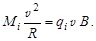 которая создает центростремительное ускорение v 2/ R, направленное к точке О, под действием которого ион будет двигаться по окружности радиуса R. Таким образом,
