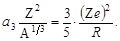 в формуле определяет взаимное кулоновское отталкивание протонов, энергия которого пропорциональна Z2/ R. Кулоновские силы не испытывают насыщения, и каждый из Z протонов взаимодействует со всеми остальными Z – 1; таким образом Z(Z - 1) ≈ Z2. Коэффициент а 3 может быть вычислен на основании представления о равномерном распределении электрического заряда по объему сферы радиуса R: