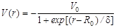 где V(r) – так называемый потенциал Вудса-Саксона (рис. 2.3.1), совпадающий по форме с распределением (1.5.3) плотности ядерного вещества в ядре: