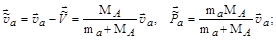 Найдем с помощью (4.5.1) и (4.5.5) скорости движения частицы а и ядра-мишени А в СЦИ и соответствующие им импульсы: