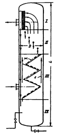 Имеет 4 секции: I - каплеотбойная; II - разделительная; III- осадительная;
