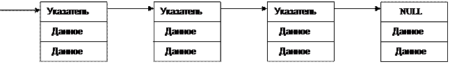 Простейшим списком является линейный или однонаправленный список. Признаком конца списка является значение указателя на следующий элемент равное NULL. Для работы со списком должен существовать указатель на первый элемент - заголовок списка. Иногда удобно иметь и указатель на конец списка.