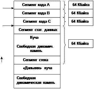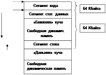 C++ поддерживает 7 моделей памяти: tiny, small, medium, compact, large, huge, flat. Для каждой модели различается количество сегментов отведенных под код программы и данных. Рассмотрим эти модели.
