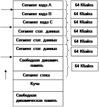 Размер кода или данных ограничен адресной памятью (1 Мбайт).
