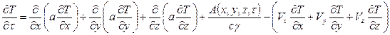 И, наконец, теплоперенос за счет геотермического градиента, конвекции, при наличии внутриземных локальных источников тепла и условии, что температуропроводность горных пород зависит от их температуры, описывается следующим уравнением: