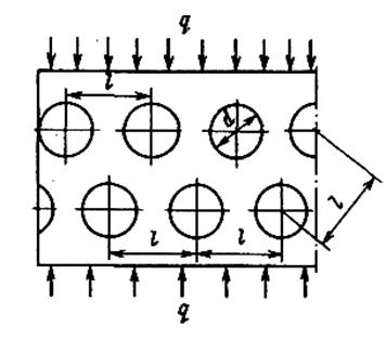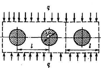 Формирование ледопородных водонепроницаемых ограждений и подпорных стен производят с помощью серии замораживающих колонок, расположенных на равном расстоянии друг от друга. В этом случае тепловой поток q направлен с обеих сторон к ледопородным цилиндрам, расположенным в ряд (рис. 3.9).