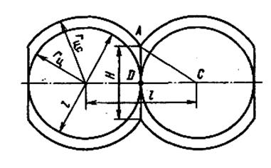 — радиус ледопородных цилиндров после их смыкания, при которых достигается заданная толщина Н ледопородной стенки в замке, м (рис. 3.10).