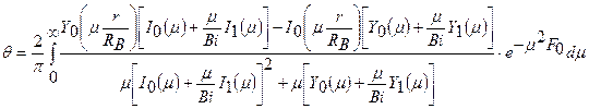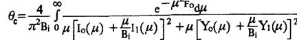 При бесконечно больших значениях коэффициента теплоотдачи а, т.е. при очень больших значениях критерия Био (Вi → ∞) уравнение (4.7) принимает вид: