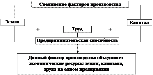Земля, труд и капитал приводятся в действие и взаимодействие предпринимателем. Человек (или группа людей), который берет на себя ответственность и риск за использование этих факторов производства и решает, как распорядиться данными ресурсами, называется предпринимателем. Чтобы принять правильные решения в организации и управлении фирмой, он должен обладать предпринимательскими способностями, являющимися четвертым фактором производства. Риск неизбежен, поскольку предприниматели покупают и используют факторы производства без какой-либо гарантии, что деньги, которые они получат от продажи своей продукции, покроют их затраты. У них нет никакой уверенности, что они получат прибыль. Только ожидание прибыли заставляет их идти на риск и принимать ответственность за свои решения по вопросу, как наиболее оптимально и эффективно соединить факторы производства (см. рис. 3).