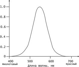 Рис. 2.2. Интегральная кривая спектральной чувствительности глаза