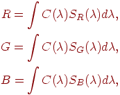 (красный, зеленый, синий), мощность которых определяется интегральными соотношениями