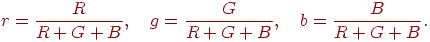 Трехмерная природа восприятия цвета позволяет отображать его в прямоугольной системе координат. Любой цвет можно изобразить в виде вектора, компонентами которого являются относительные веса красного, зеленого и синего цветов, вычисленные по формулам