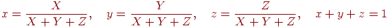 - являются чисто теоретическими, поскольку построены с использованием отрицательных значений основных составляющих цвета. Треугольник основных цветов был построен так, чтобы охватывать весь спектр видимого света. Кроме того, равное количество всех трех гипотетических цветов в сумме дает белый цвет. Координаты цветности строятся так же, как и в приведенной выше формуле: