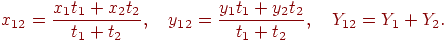 Для смешения двух цветов используются законы Грассмана. Пусть два цвета заданы на графике МКО координатами