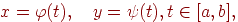 Для аналитического представления кривой во многих случаях удобнее задавать кривую параметрическими уравнениями, используя вспомогательную переменную (параметр)