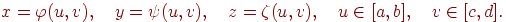 не удовлетворяет ни одна точка пространства. Поверхность также может быть задана в параметрическом виде, но в отличие от кривой для этого требуются две вспомогательные переменные (параметры):
