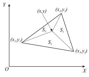 , лежащей внутри треугольника, воспользуемся так называемыми барицентрическими координатами