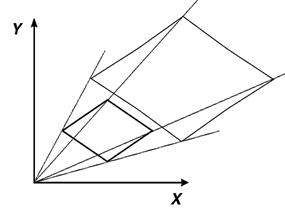 , то несложно доказать, что обе точки переместятся вдоль прямых, проходящих через саму точку и начало координат, т.е. в направлении своего же радиус-вектора (рис. 3.5). При этом расстояние между новыми точками будет в